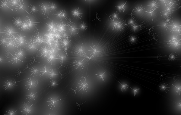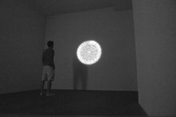 dandelion clock is an interactive immersive installation that explores the spatial and temporal qualities of dandelion seeds in flight. in this work, the seeds float through space interacting with the viewer and each other.