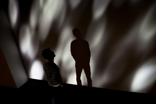 light shadows is an interactive immersive installation that explores the non-linear relationship between the geomoetry of leaves and the shadows they cast. the movement of the leaves blowing in the wind, and the shift of the shadows throughout the day (the shadows rotate with the time of day) are evocative of the movement in other natural systems, and the artwork functions as a sun dial.