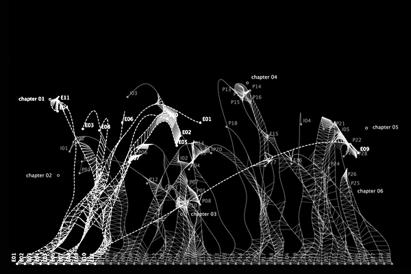 essay and chapter break graphics for Architecture in Formation by pablo lorenzo-eiroa and aaron sprecher (published by routledge / taylor and francis group, 2013). the graphics were designed and grown to visualize the relationships between the author contributions, the chapters, and the other papers.